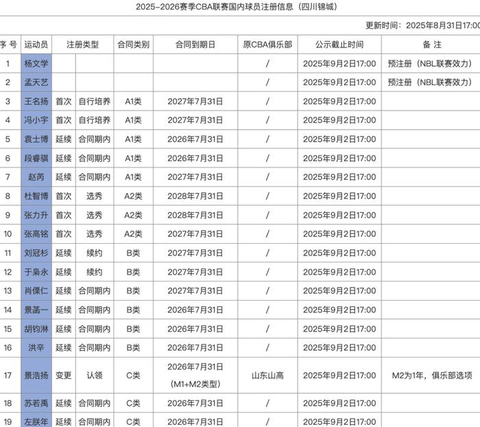四川也是备受关注的点,一度传出可能无缘注册的情况。幸好最后时刻他们还是完成了压哨注册,最终19个人参加下赛季,即便他们下赛季没什么冲击力,但只要维持住参赛权,对于他们就非常满足了。至于股份会不会变现在还不清楚,看看后续有没有动态更新出来吧。