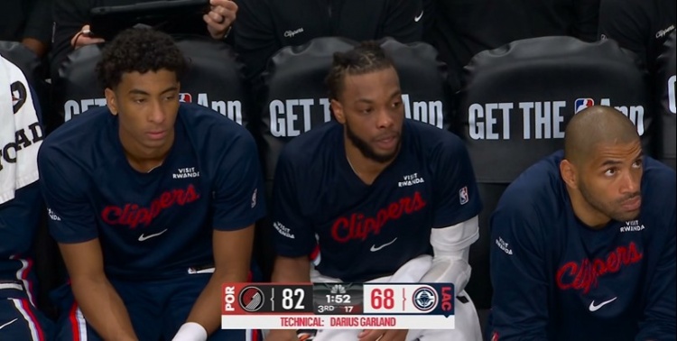 快船迎战开拓者,第三节加兰吃技犯,当时他被阿夫迪亚造犯规,被换下还在抱怨,吃到技术犯规。